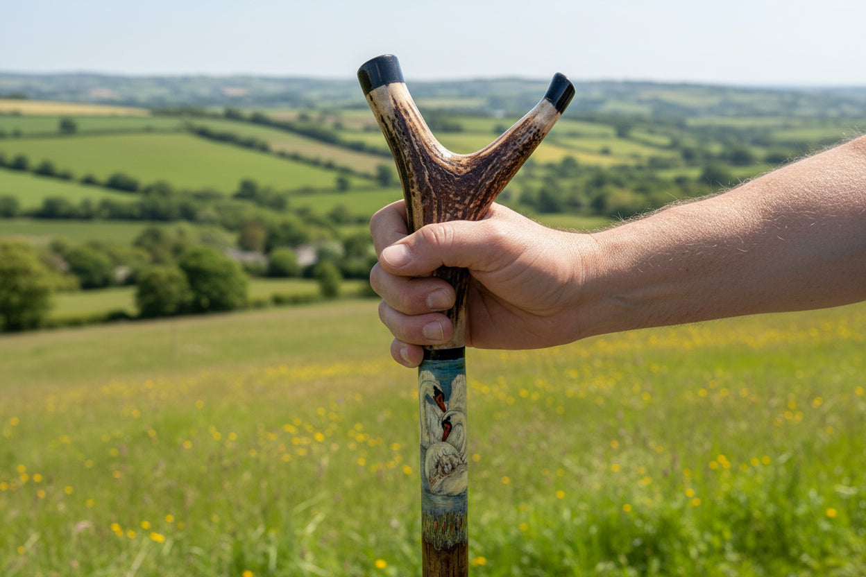 Whether you want a unique piece of artwork to decorate your home; looking great propped up in a hall or in a lovely stick stand. A talking point when friends come round or a thumbstick with a difference. This stick may be the one for you;